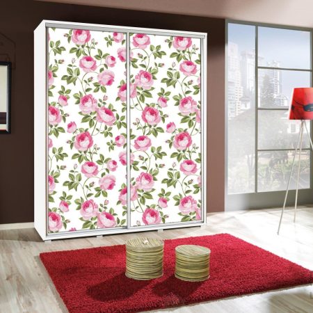 Garderobna omara z drsnimi vrati z grafiko Rože 2 Penelopa 155 cm