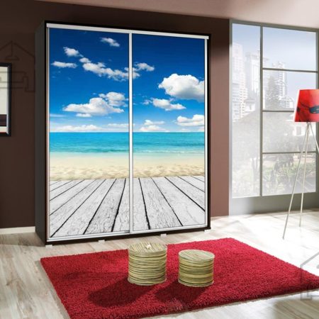 Garderobna omara z drsnimi vrati z grafiko Plaža 1 Penelopa 155 cm