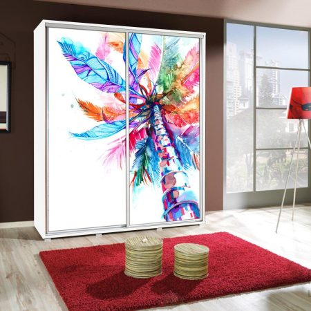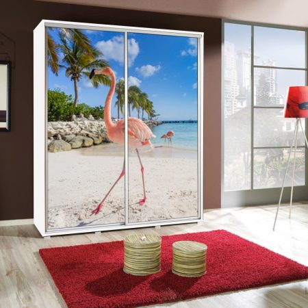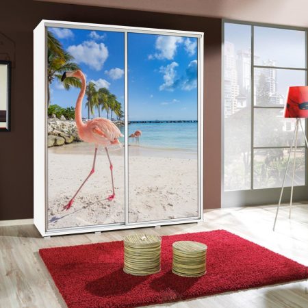 Garderobna omara z drsnimi vrati z grafiko Flaming 2a Penelopa 155 cm