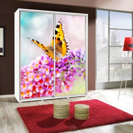 Garderobna omara z drsnimi vrati z grafiko Metulj 2 Penelopa 155 cm