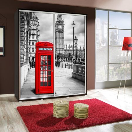Garderobna omara z drsnimi vrati z grafiko London 3 Penelopa 155 cm