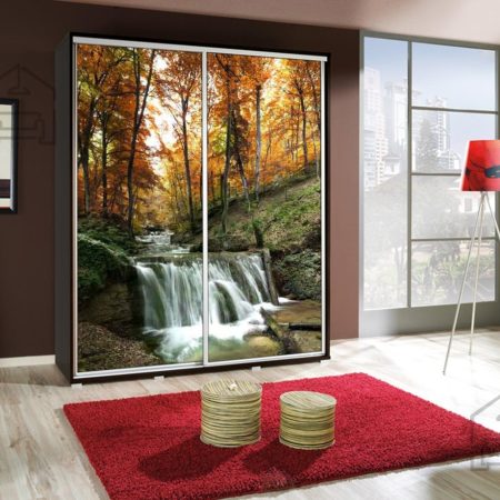 Garderobna omara z drsnimi vrati z grafiko Gozd 1 Penelopa 155 cm