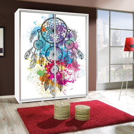 Garderobna omara z drsnimi vrati z grafiko Lovilec sanj 2 Penelopa 155 cm