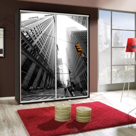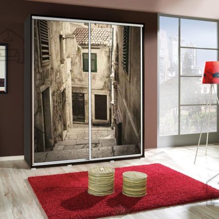 Garderobna omara z drsnimi vrati z grafiko Ulica Penelopa 155 cm