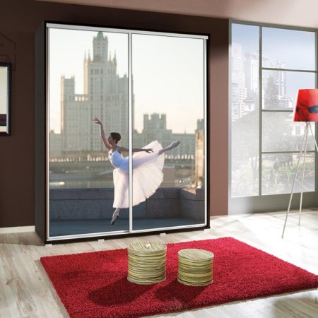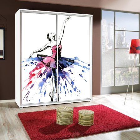 Garderobna omara z drsnimi vrati z grafiko Baletka 3a Penelopa 155 cm