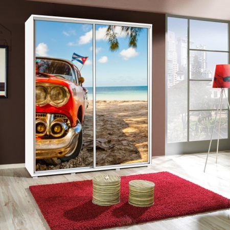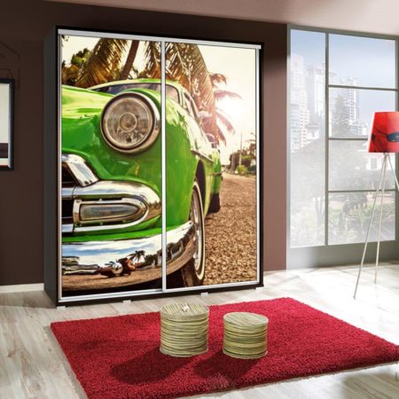 Garderobna omara z drsnimi vrati z grafiko Avto 4 Penelopa 155 cm