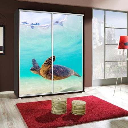 Garderobna omara z drsnimi vrati z grafiko Želva 2 Penelopa 155 cm