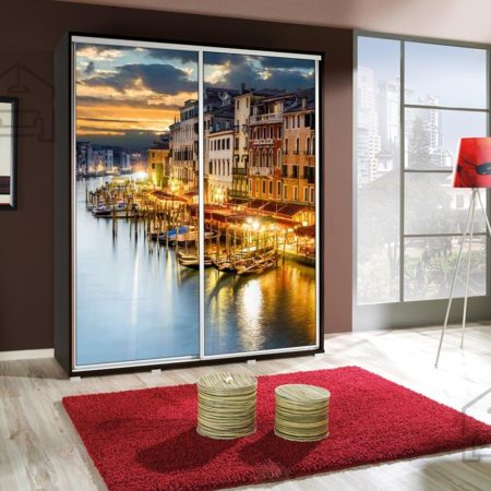 Garderobna omara z drsnimi vrati z grafiko Benetke 2 Penelopa 155 cm