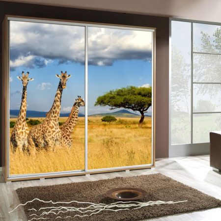 Garderobna omara z drsnimi vrati z grafiko Žirafa 1a Penelopa 205 cm