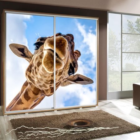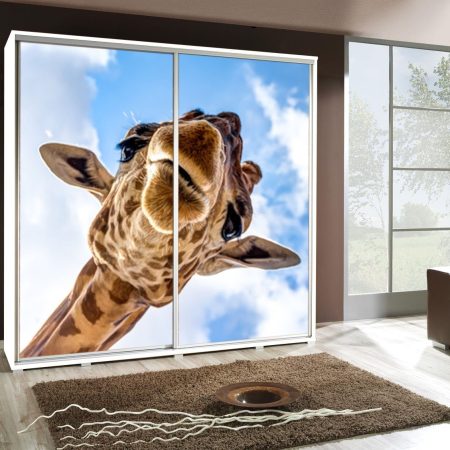 Garderobna omara z drsnimi vrati z grafiko Žirafa 1 Penelopa 205 cm