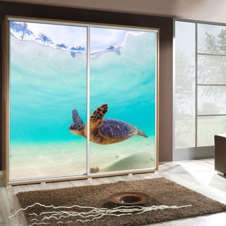 Garderobna omara z drsnimi vrati z grafiko Želva 1 Penelopa 205 cm