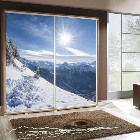 Garderobna omara z drsnimi vrati z grafiko Zima 1 Penelopa 205 cm