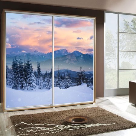 Garderobna omara z drsnimi vrati z grafiko Zima 2 Penelopa 205 cm