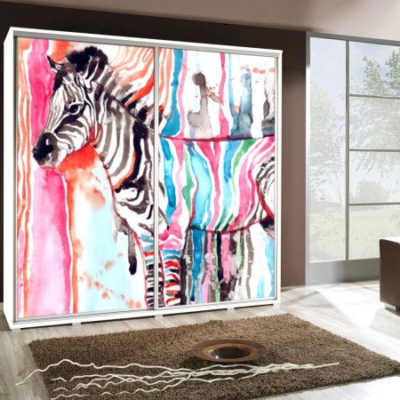 Garderobna omara z drsnimi vrati z grafiko Zebra Penelopa 205 cm