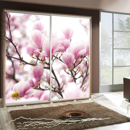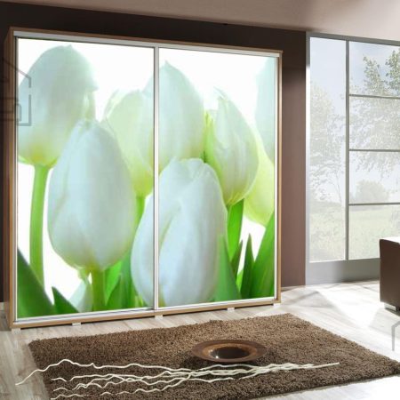 Garderobna omara z drsnimi vrati z grafiko Tulipani Penelopa 205 cm