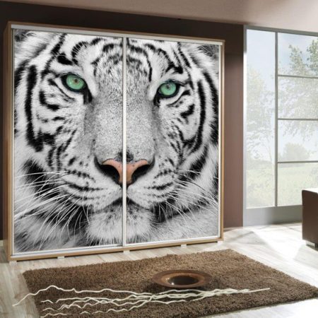 Garderobna omara z drsnimi vrati z grafiko Tigra Penelopa 205 cm