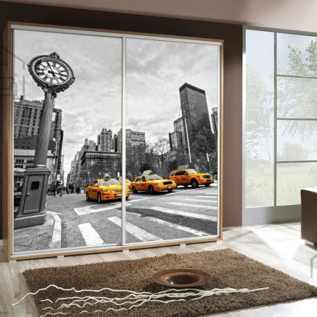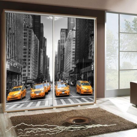 Garderobna omara z drsnimi vrati z grafiko Taxi 1 Penelopa 205 cm