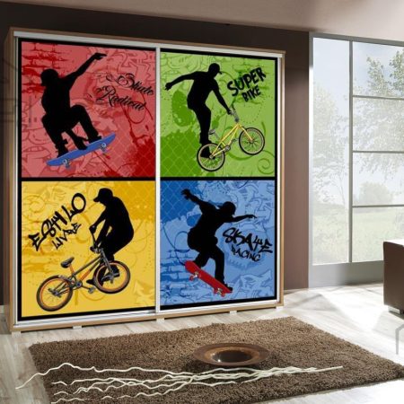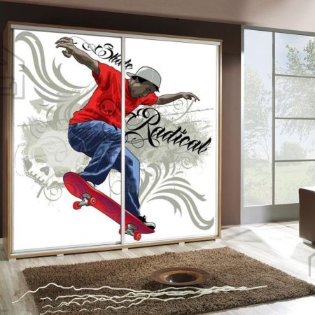 Garderobna omara z drsnimi vrati z grafiko Skate 1 Penelopa 205 cm