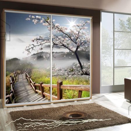 Garderobna omara z drsnimi vrati z grafiko Češnja 2 Penelopa 205 cm