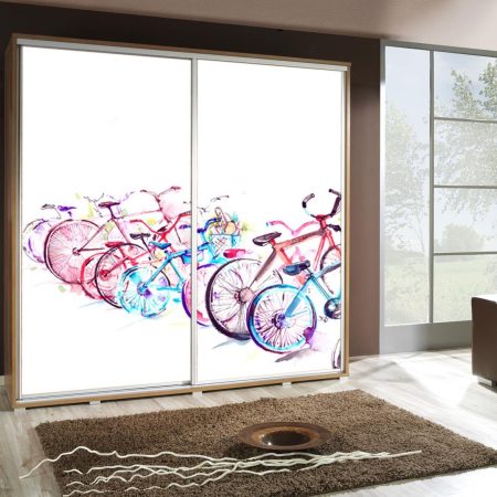 Garderobna omara z drsnimi vrati z grafiko Kolesa Penelopa 205 cm