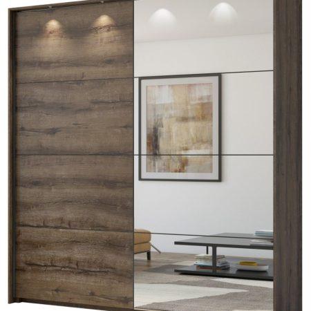 Barva korpusa: Monastary hrast LED luči so za doplačilo Dimenzije: 2280x2400x640 mm Garderobna omara z dvojinimi drsnimi vrati ter ogledalom, je brez polic. | Material: Iveral in MDF