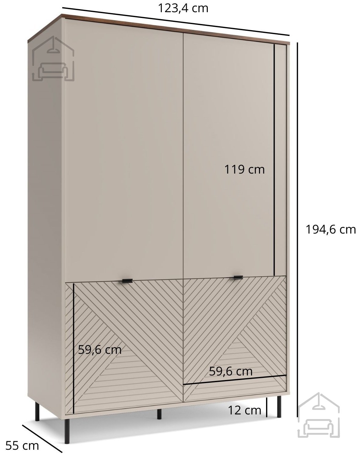 Če iščete omaro, ki bo združevala funkcionalnost in stil, je Evo 4D prava izbira. Poleg estetsko privlačnega videza in kvalitetne izdelave, ta omara ponuja tudi impresivno prostornost. Omogoča vam, da svoje oblačila, dodatke in osebne predmete hranite na organiziran način, hkrati pa boste v svojem domu ustvarili prijeten, urejen in moderen ambient.