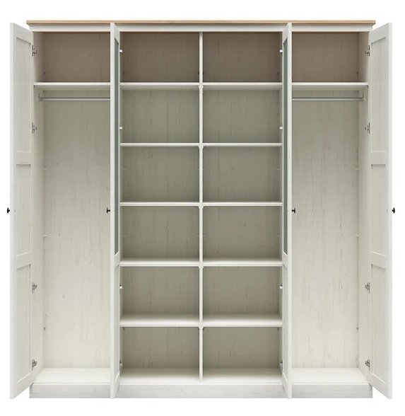 Dimenzije: 1114x1500x450 mm Široka omara Torin je idealna izbira za razstavljanje in shranjevanje vaših dragocenih spominov, okraskov ali knjig. Ta kos pohištva je zasnovan z mislijo na praktičnost in estetiko, s poudarkom na udobju uporabe.