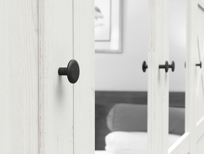- Črni kovinski ročaji prinašajo prefinjenost in modernost, ustvarjajoč eleganten kontrast.