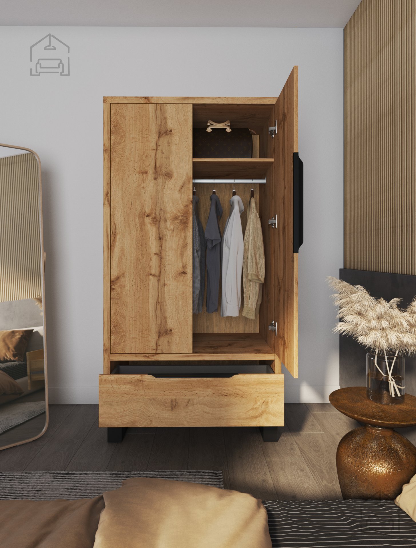 Garderobna omara Halle ni le kos pohištva, temveč tudi pomemben del vašega vsakdana. Ponuja rešitev za shranjevanje, ki je tako funkcionalna kot estetska, hkrati pa prinaša pridih elegance v vaš dom. Ne glede na to, ali jo postavite v spalnico, predsobo ali katerikoli drug prostor, bo ta omara izpolnila vsa vaša pričakovanja.