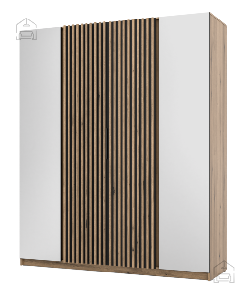 LED osvetlitev: za doplačiloDimenzije: 2000x2390x619 mm Garderobna omara Kaja je več kot le pohištvo za shranjevanje - je rezultat skrbnega oblikovanja s praktičnim pristopom k organizaciji prostora. Omogoča organiziranje tudi najobsežnejše garderobe ali kolekcije artiklov, pri tem pa ohraniti estetiko in visoko kakovost izdelave. Garderobna omara Kaja se odlično poda k vsakemu notranjemu oblikovanju in doda impresiven stilski pridih. | Material: Iveral in MDF