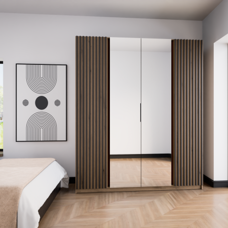 LED osvetlitev: za doplačiloDimenzije: 2000x2390x619 mm Garderobna omara Kaja je več kot le pohištvo za shranjevanje - je rezultat skrbnega oblikovanja s praktičnim pristopom k organizaciji prostora. Omogoča organiziranje tudi najobsežnejše garderobe ali kolekcije artiklov, pri tem pa ohraniti estetiko in visoko kakovost izdelave. Garderobna omara Kaja se odlično poda k vsakemu notranjemu oblikovanju in doda impresiven stilski pridih. | Material: Iveral in MDF in steklo