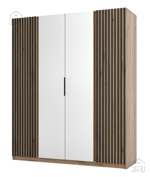 Kot del kolekcije Torin, omara izstopa zaradi odebeljenih stranic, kovinskih ročajev in žlebičaste letve v barvi hrasta venge magic. Ti detajli dodajajo trdnost in eleganco celotni zasnovi.