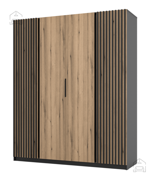 LED osvetlitev: za doplačiloDimenzije: 2000x2390x619 mm Garderobna omara Kaja je več kot le pohištvo za shranjevanje - je rezultat skrbnega oblikovanja s praktičnim pristopom k organizaciji prostora. Omogoča organiziranje tudi najobsežnejše garderobe ali kolekcije artiklov, pri tem pa ohraniti estetiko in visoko kakovost izdelave. Garderobna omara Kaja se odlično poda k vsakemu notranjemu oblikovanju in doda impresiven stilski pridih. | Material:Barva materiala: Črna mat/Črna mat, Črna mat/Hrast Artisan