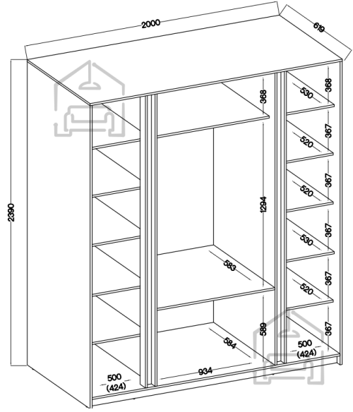 LED osvetlitev: za doplačiloDimenzije: 2000x2390x619 mm Garderobna omara Kaja je več kot le pohištvo za shranjevanje - je rezultat skrbnega oblikovanja s praktičnim pristopom k organizaciji prostora. Omogoča organiziranje tudi najobsežnejše garderobe ali kolekcije artiklov, pri tem pa ohraniti estetiko in visoko kakovost izdelave. Garderobna omara Kaja se odlično poda k vsakemu notranjemu oblikovanju in doda impresiven stilski pridih. | Material: Iveral in MDF