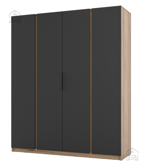 Kot del kolekcije Torin, omara izstopa zaradi odebeljenih stranic, kovinskih ročajev in žlebičaste letve v barvi hrasta venge magic. Ti detajli dodajajo trdnost in eleganco celotni zasnovi.