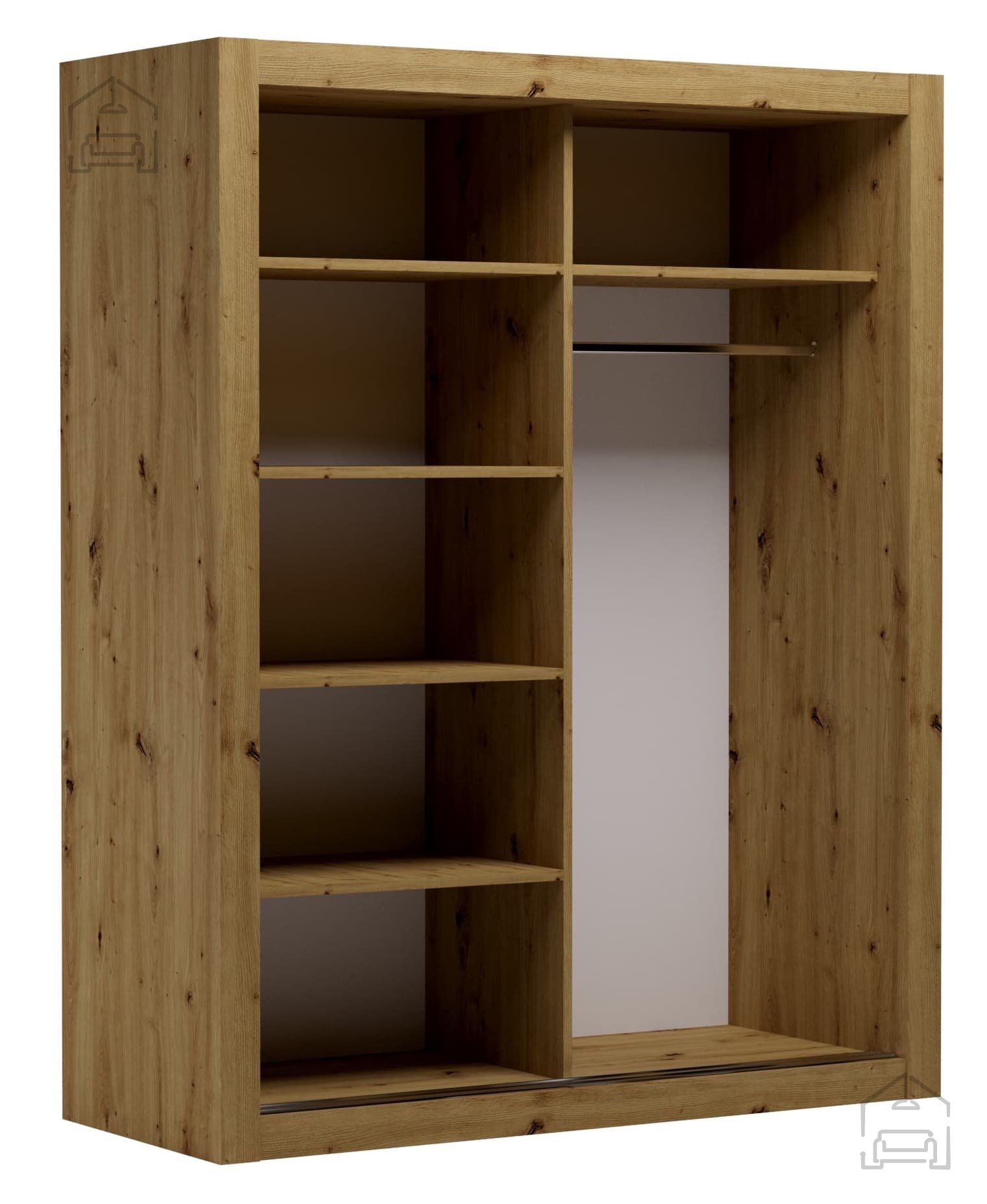 Barva: Artisan, Bela Ročaji: Črni, kovinski Dimenzije: 1600x2000x640 mm Garderobna omara Modi je oblikovana v dveh barvnih različicah - Artisan in Beli. | Material: Iveral in MDF