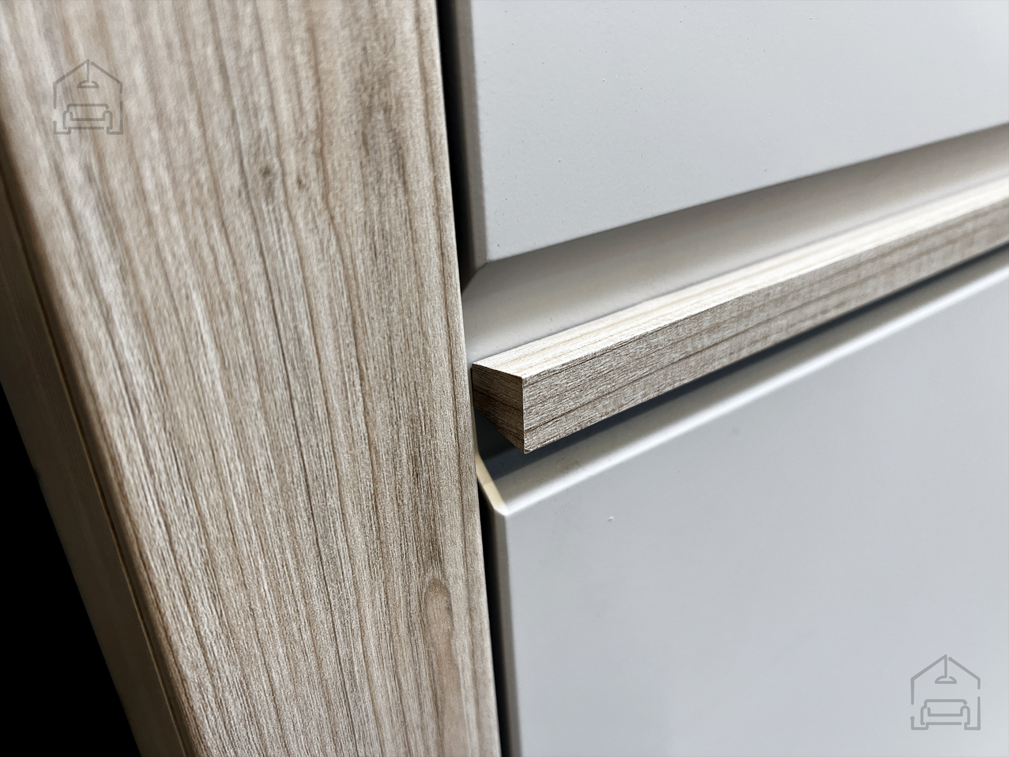 • Udobno zapiranje predalov je doseženo s tihimi zapiralnimi vodili in kovinskimi ročaji. To zagotavlja ne samo eleganten videz, ampak tudi praktičnost in udobje pri vsakodnevni uporabi omare.