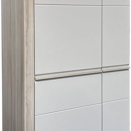 Široka omara Torin je idealna izbira za razstavljanje in shranjevanje vaših dragocenih spominov, okraskov ali knjig. Ta kos pohištva je zasnovan z mislijo na praktičnost in estetiko, s poudarkom na udobju uporabe.