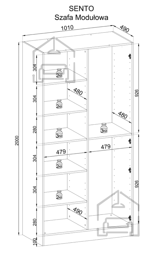 Dimenzije: 1010x2000x510 mm Ohišje in stranice garderobne omare so narejene iz 16 mm laminirane plošče, ki je odporna na vlago in praske.