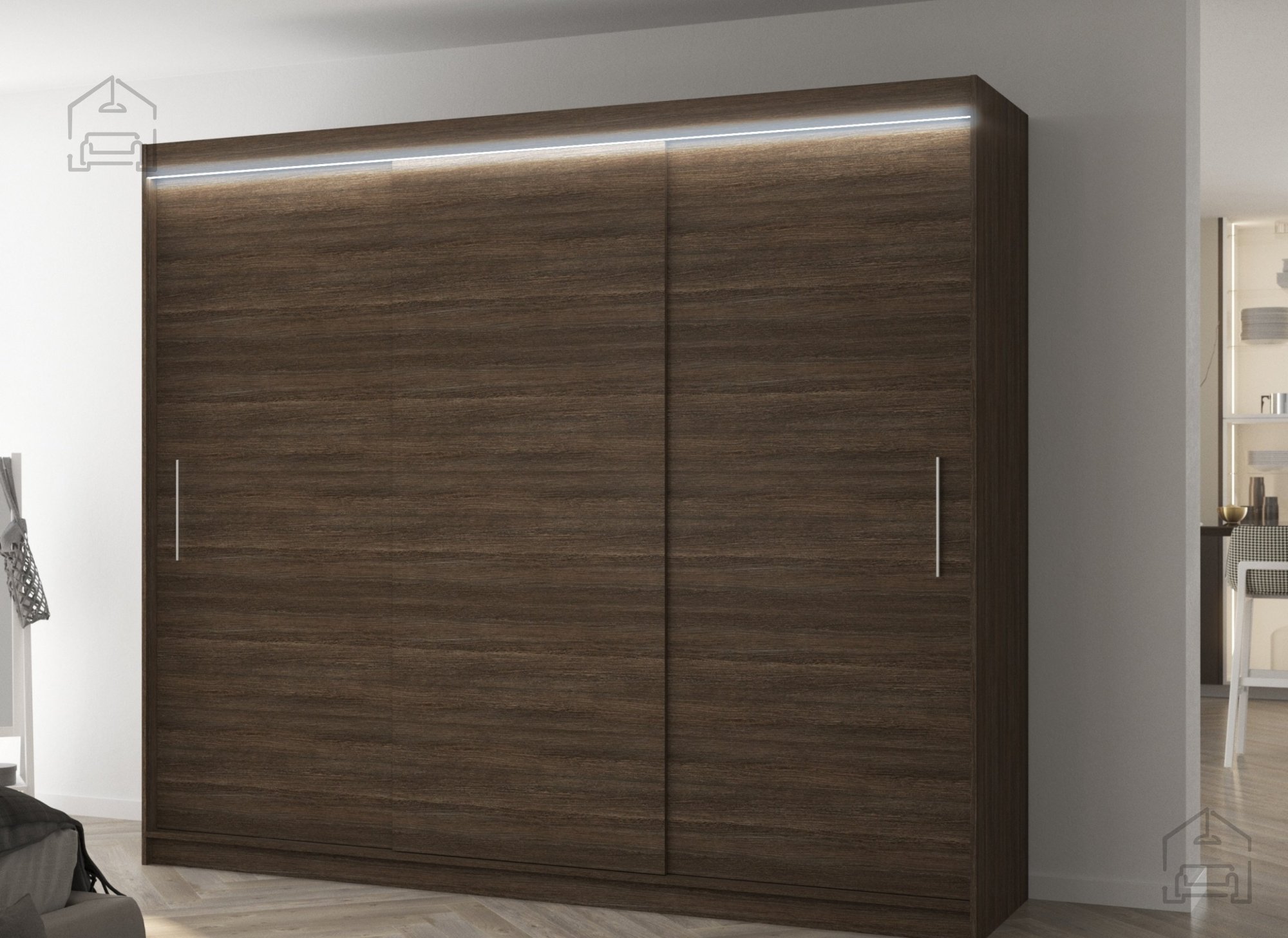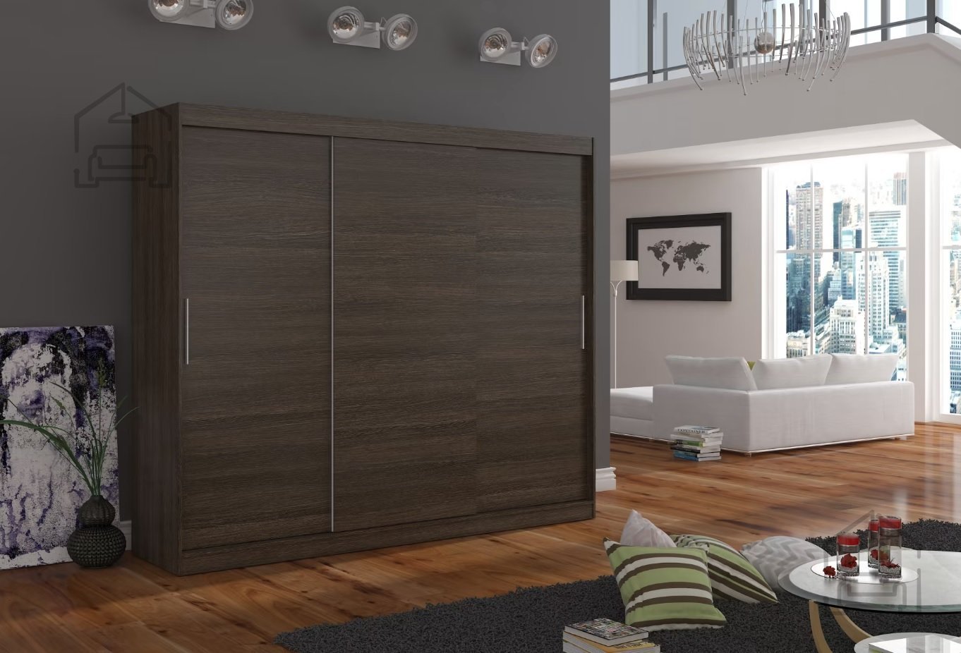 Szafa przesuwna ANTOS je idealan način organiziranja prostora. Namještaj je opremljen prostranim półki ili držačem na koji možete objesiti odjeću, garnituru, odzież wierzchnia czy koszule. Zbog činjenice da że szafa jest przesuwna nie musisz wyznaczać dodaktovego miesca na otwarcie drzwi, przez co jest przyskiem przyszkojem do małego pokoju lub wąskiego przedpokoju. Dodatokwym atutem jest possibilty dokupienia efektownego iluminazione LED, koja dodaje sáfie jak i pomieszczeniu cudownego roku.