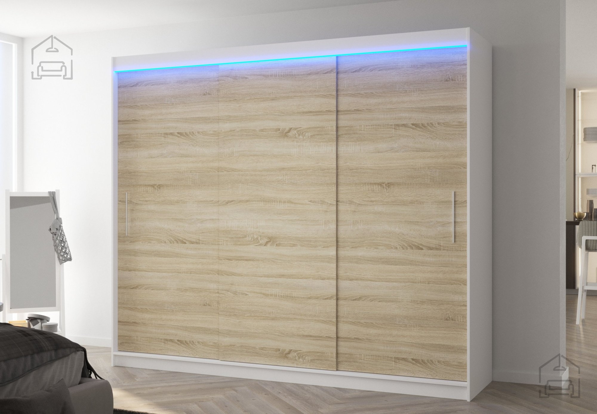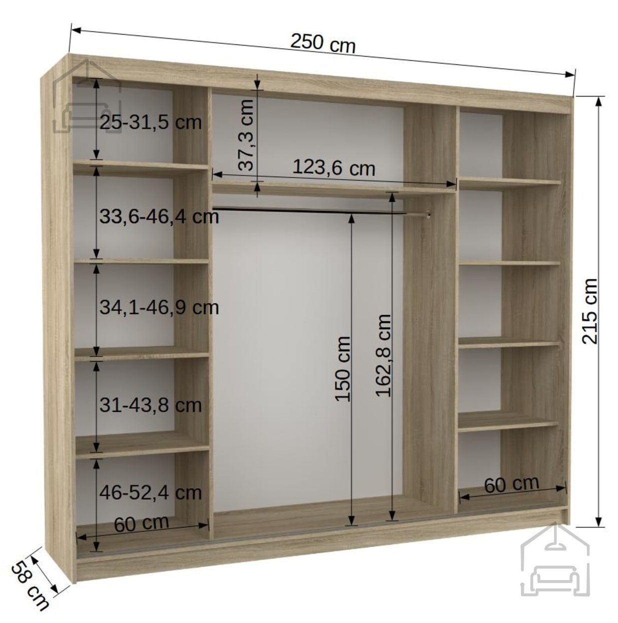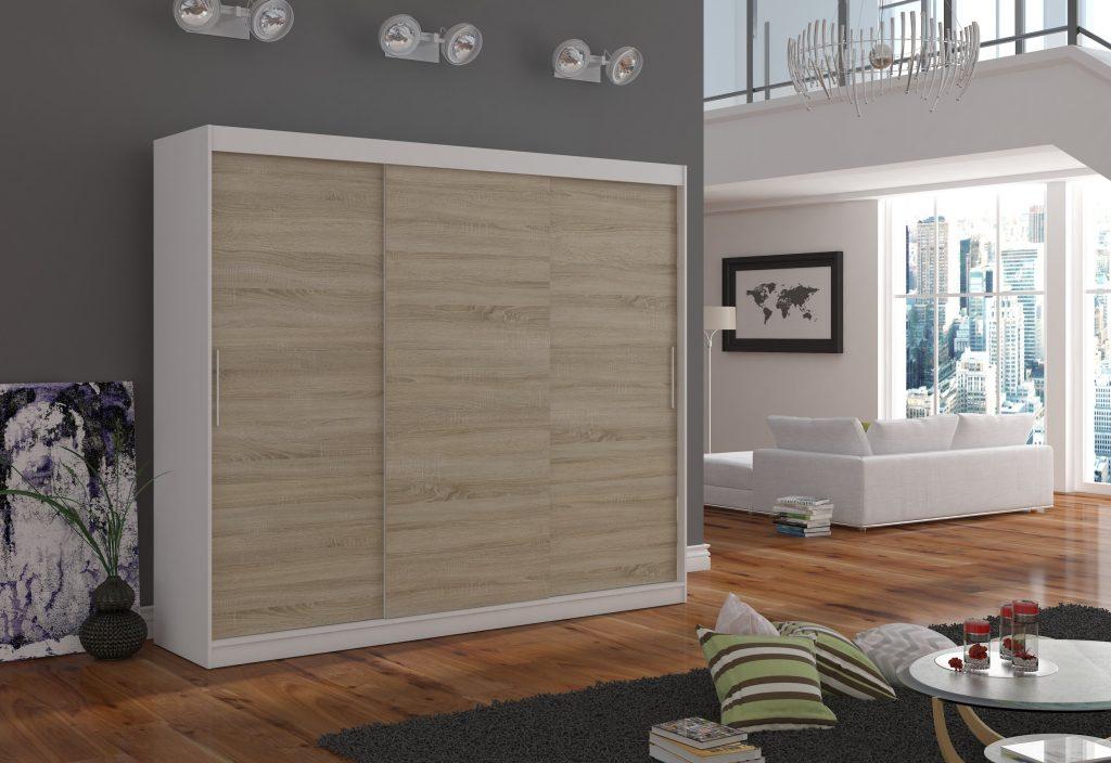 Szafa przesuwna ANTOS je idealan način organiziranja prostora. Namještaj je opremljen prostranim półki ili držačem na koji možete objesiti odjeću, garnituru, odzież wierzchnia czy koszule. Zbog činjenice da że szafa jest przesuwna nie musisz wyznaczać dodaktovego miesca na otwarcie drzwi, przez co jest przyskiem przyszkojem do małego pokoju lub wąskiego przedpokoju. Dodatokwym atutem jest possibilty dokupienia efektownego iluminazione LED, koja dodaje sáfie jak i pomieszczeniu cudownego roku.