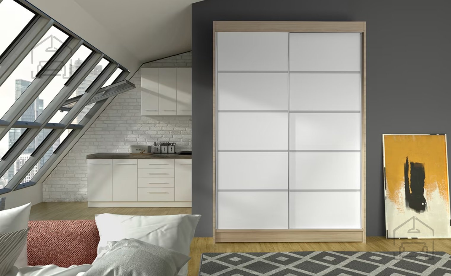 LED luči: za doplačiloDimenzije: 1200x2000x580 mm Odkrijte popolno rešitev za organizacijo vašega prostora z našo elegantno garderobno omaro z drsnimi vrati Benisso. Ta izjemna omara, z dimenzijami 120x58x200 cm, je zasnovana tako, da ustreza vsem vašim potrebam po shranjevanju, hkrati pa doda pridih sodobne elegance vašemu domu.