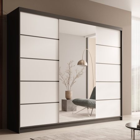 V današnjem svetu, kjer se funkcionalnost prepleta z estetiko, je izbira prave garderobne omare ključnega pomena. Predstavljamo vam garderobno omaro z drsnimi vrati Etna - 250 cm, ki je zasnovana za vsakogar, ki si želi urejenega in stilsko dovršenega prostora. Ta omara ne le da ustreza sodobnim trendom, ampak tudi izpolnjuje najvišje standarde kakovosti in praktičnosti.