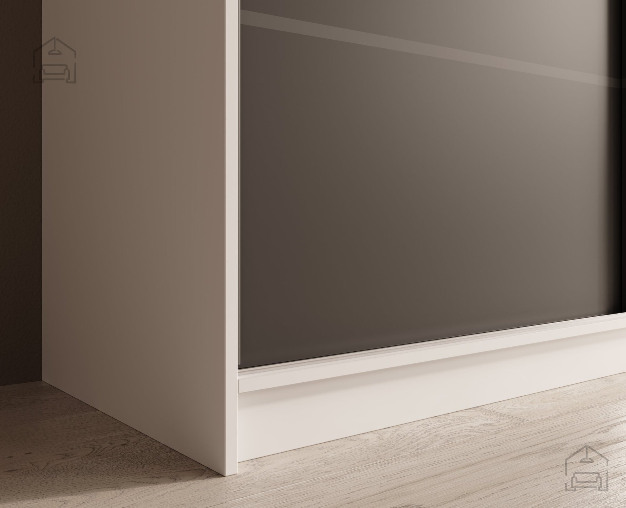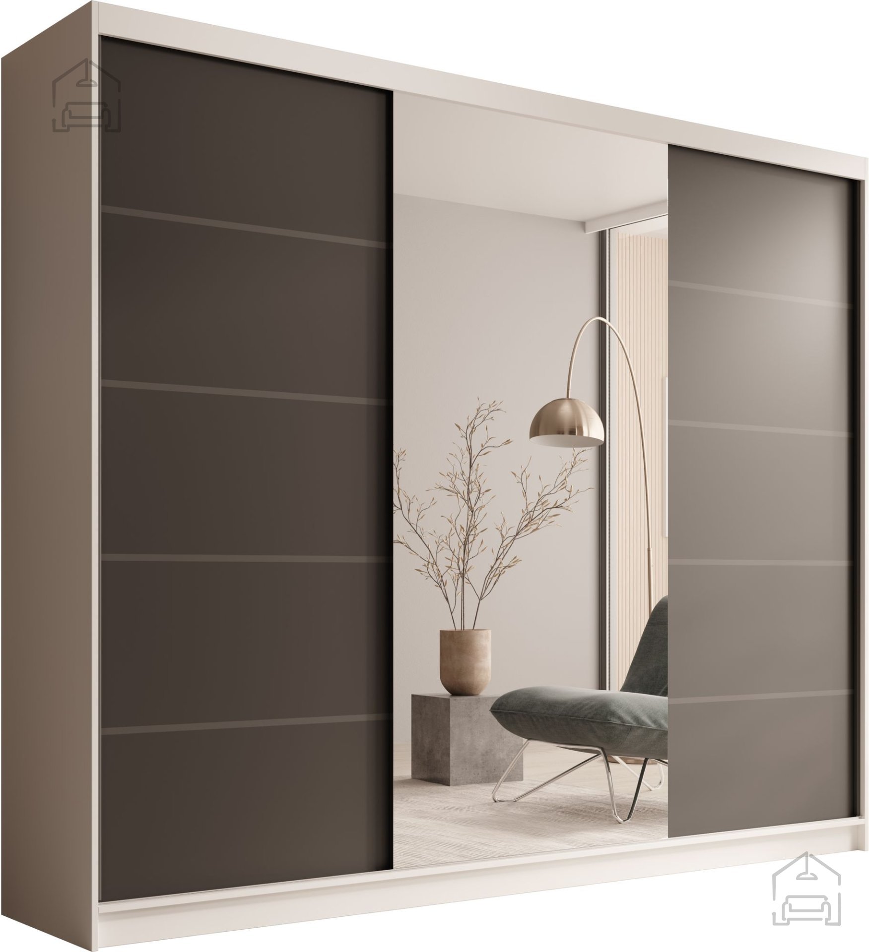 - Estetika in funkcionalnost: kombinacija bele barve in velikih ogledal poskrbi za svetlost in prostornost vašega doma, medtem ko drsna vrata omogočajo gladko in tiho delovanje.