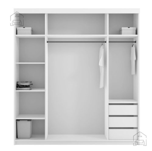 Barva: Črna, Bela, SivaDimenzije: 2000x2160x600 mm Garderobna omara German je funkcionalen in estetsko dovršen kos pohištva. Garderobna omara z dvema krilnima vrati ponuja obilico prostora za shranjevanje različnih oblačil, obutve in drugih predmetov. To zagotavlja organiziranost in urejenost vašega prostora. Drsna vrata zagotavljajo udobje med uporabo.