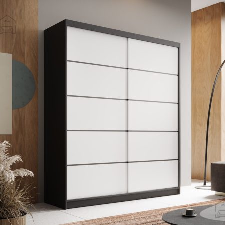 Omara Hannah 180 je eleganten in funkcionalen kos pohištva, ki se odlično poda v sodobne interierje. Z širino 180 cm ponuja veliko prostora za shranjevanje oblačil in dodatkov. Drsna vrata zagotavljajo udobje pri uporabi in prihranek prostora, kar jo naredi idealno izbiro za spalnico, garderobo ali predsobo.
