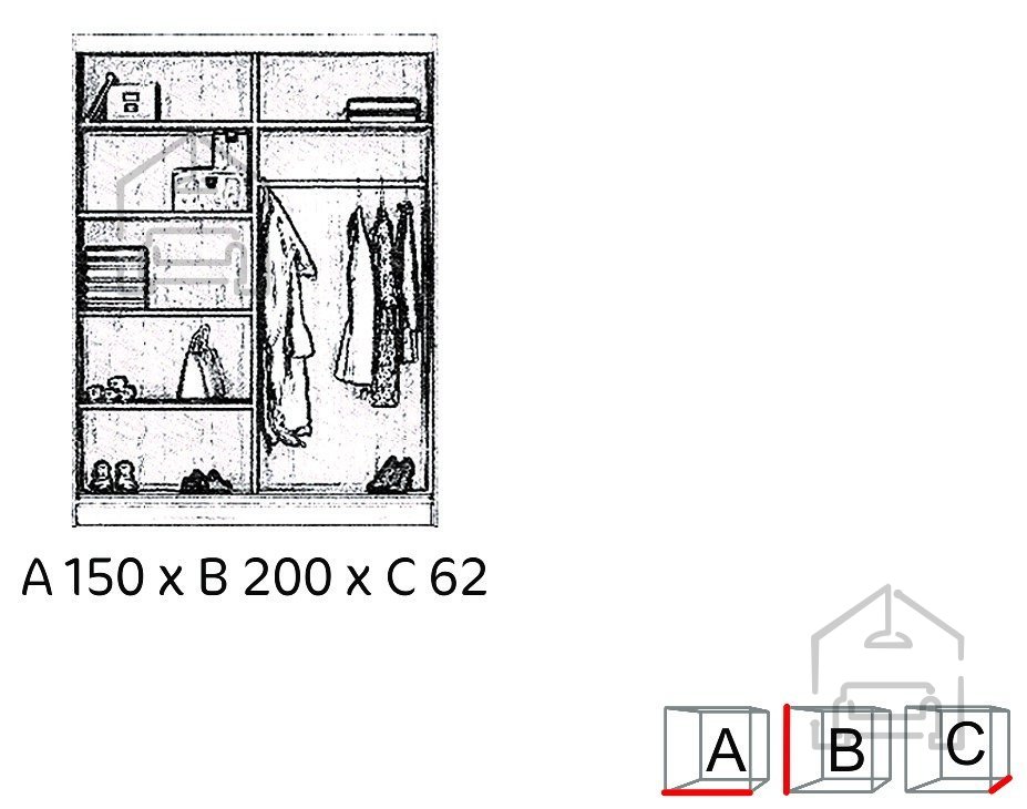 Barva: BelaDimenzije: 1500x2000x620 mm Garderobna omara z drsnimi vrati Infiniti je eleganten in modern kos pohištva, ki bo prinesel funkcionalnost in lepoto v vaš prostor.