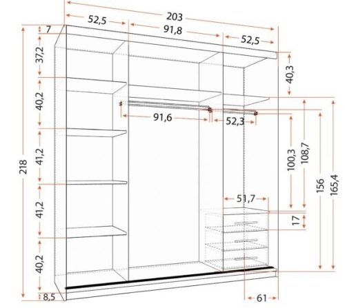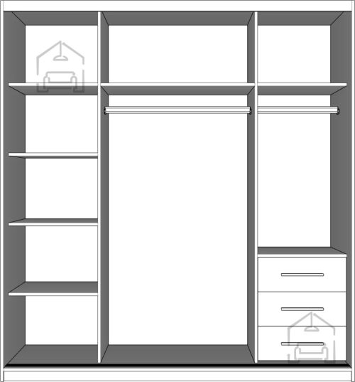 - Razdeljen je na tri dele, opremljene z več prostornimi policami in palicami.