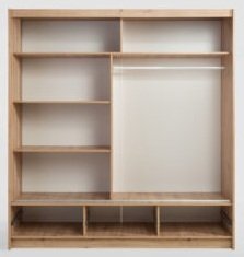 Če iščete garderobno omaro, ki bo združila estetski videz in funkcionalne lastnosti, je Nevada idealna izbira za vas. Njena elegantna zasnova, v kombinaciji s praktičnimi rešitvami, kot so drsna vrata in dodatni predali, naredijo to omaro neprecenljivo za vsak dom. Ne glede na to, ali se odločate za prenovo spalnice ali dopolnitev obstoječega prostora, bo garderobna omara z drsnimi vrati Nevada zadovoljila vse vaše potrebe in pričakovanja. | Material: Iveral in MDF