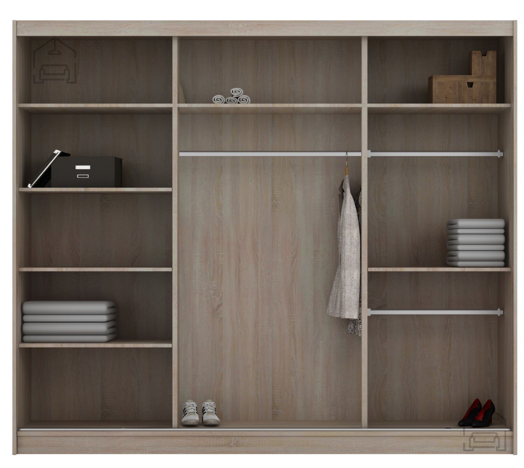 - Načrtovana notranjost vam omogoča optimalno shranjevanje oblačil, dodatkov in drugih predmetov.
